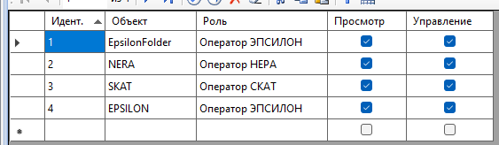Права назначала только на объект эпсилон, неру и скат пока не трогала
